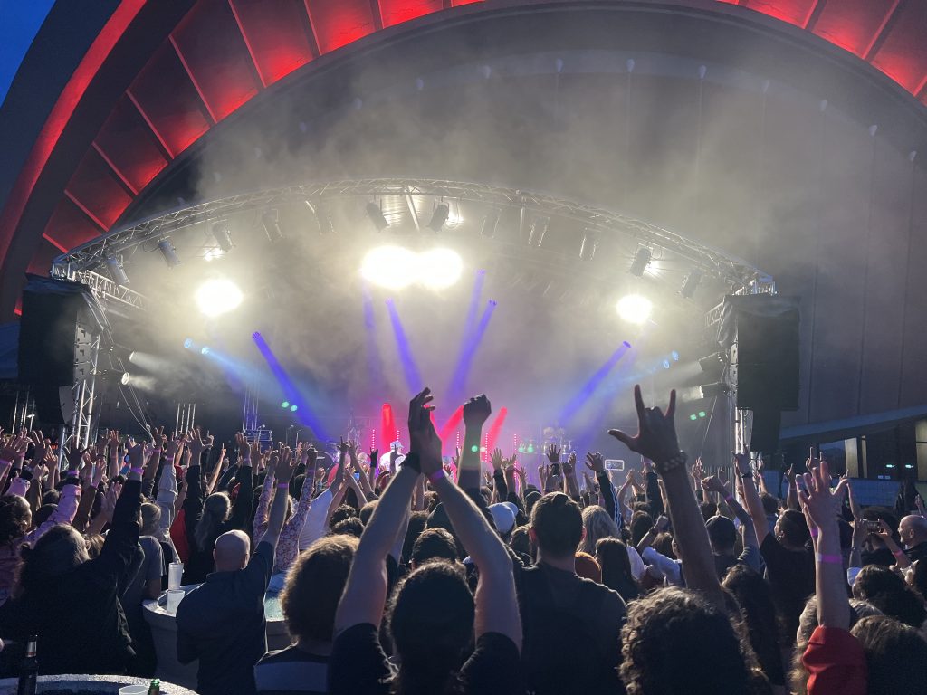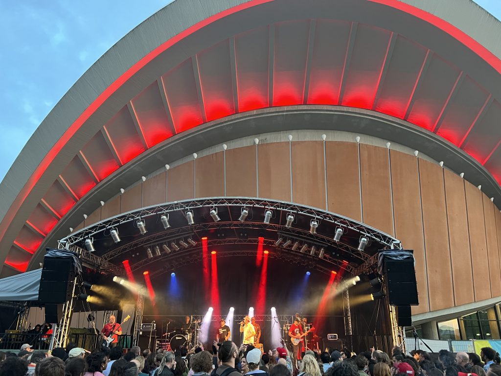 But the city is vast, and even after three years here, I still feel like a tourist, visiting places and events I’ve always dreamed of with so much enthusiasm. Berlin isn’t always a friendly place for unaware and emotional people, but if there’s one thing people here know how to do, it’s cultural events. Right up my alley! And this one was no different. The venue was truly incredible, and the golden hour added a special touch to the atmosphere. And what can I say about the sound system… MEIN GOTT! Of course, some people complained because, you know, according to my first German teacher, Brazilians like to complain. True! Jorge Du Peixe said he couldn’t sing any louder, and that the PAs were already adjusted. It was also heartwarming to see the excitement of some “non-Brazilians” watching the band’s unconventional lineup: four, sometimes five percussionists, one guitar, one bass, and vocals. Our Recife heavy metal is fantastic and got everyone dancing. Well, almost (laughs).