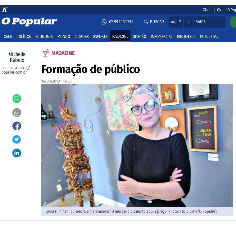 Photo content: I was interviewed by Michelle Rabelo on June 16, 2018 about the Brazilian art market for Goiás’ main newspaper, O Popular.