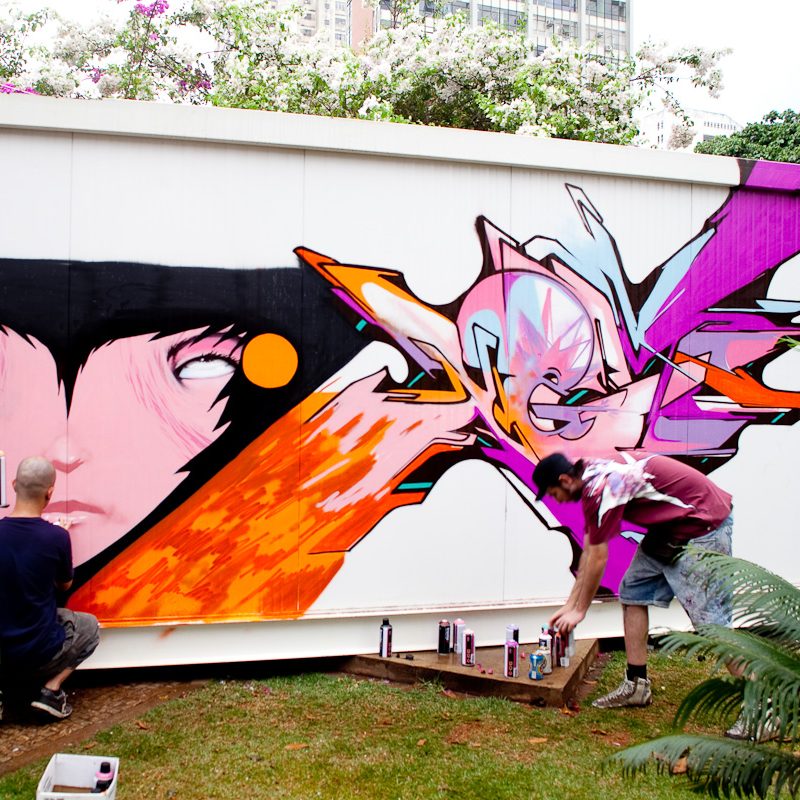 In 2011, we created, developed and executed an unprecedented project on the streets of Goiânia: three containers containing Art, in three points of great circulation of people in the City, with Graffiti on the outside and works of art made by reusing materials inside.